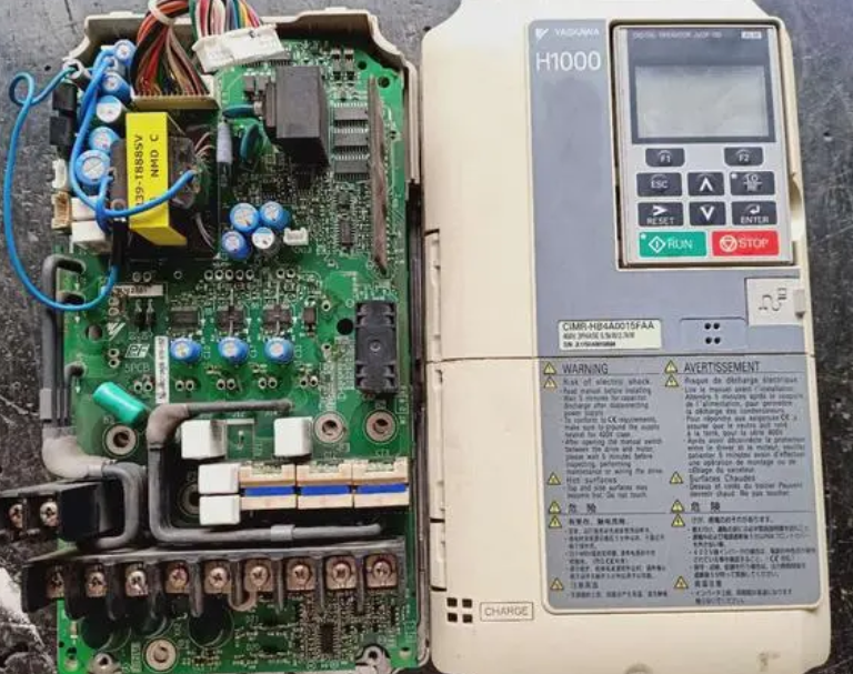 4、故障诊断与替换: 检查安川变频器内部元件,如电路板、电容等,确保它们没有损坏。如有必要,替换损坏的元件。